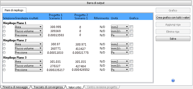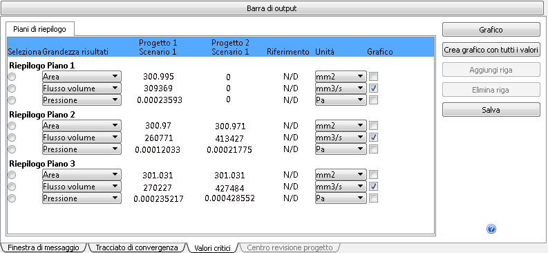 In questo passaggio, verrà utilizzato il componente Valori critici del Centro decisioni per confrontare i volumi di portata di uscita di due progetti. È possibile utilizzare i pani di riepilogo già definiti durante l'assegnazione delle condizioni al contorno dell'uscita.