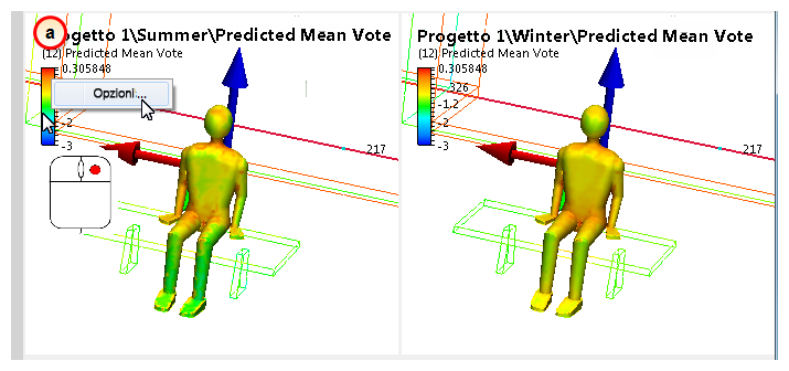 6. L'intervallo legenda di default si estende automaticamente nell'intervallo dei valori PMV trovati negli scenari dello studio di progettazione. Per rendere più chiara l'immagine di riepilogo, modificare l'intervallo per includere l'intera scala PMV: