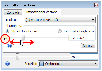 - c. Potrebbe essere necessario regolare la lunghezza del vettore per una migliore visualizzazione. Aumentare le dimensioni trascinando il dispositivo di scorrimento Lunghezza verso destra; ridurre le dimensioni trascinandolo verso sinistra: