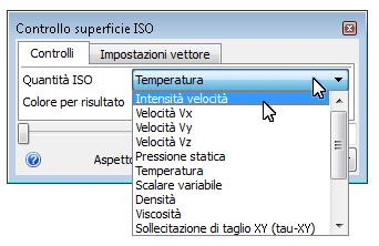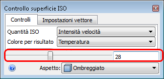 4. Per mostrare l'isosuperficie in corrispondenza di un valore di velocità costante, modificare la quantità ISO in Intensità velocità.