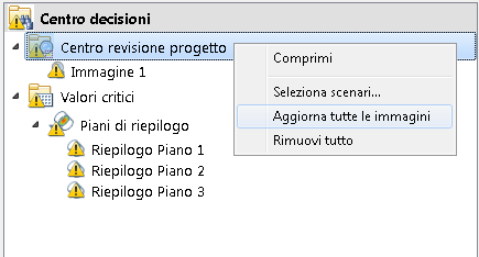 Nel Centro decisioni, fare clic con il pulsante destro del mouse sulla sezione Centro revisione progetto, quindi fare clic su Aggiorna tutte le immagini.
