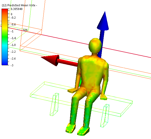 In questo passaggio, verrà utilizzato il voto medio previsto (PMV) per valutare l'impatto del progetto della sala di ingresso e la strategia di ventilazione sul comfort termico dell'occupante. Autodesk® Simulation CFD calcola il PMV utilizzando diversi fattori (ad esempio, velocità del flusso d'aria locale, temperatura, abbigliamento, regime metabolico, umidità e scambio di calore radiante) per determinare la sensazione di caldo o freddo di una persona all'interno del vano.