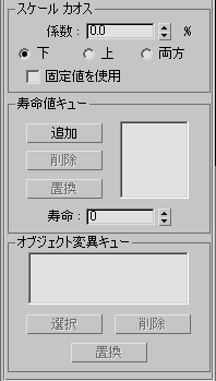 この領域のオプションでは、ランダム スケールをパーティクルに適用します。