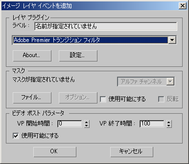 [イメージ レイヤ イベントを追加](Add Image Layer Event)ダイアログ ボックスでは、キュー内の選択したイメージをレイヤにする合成プラグインを追加することができます。