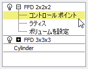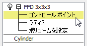 (プラス記号アイコン)をクリックして、[FFD 2x2x2]モディファイヤの階層を展開します。コントロール ポイントをクリックして、そのサブオブジェクト レベルをハイライト表示します。
