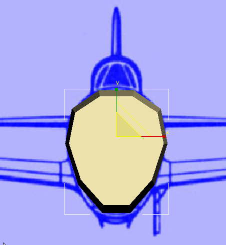 これで、機体の前方のカウルの断面図を作成できました。次の手順では、飛行機の長さに従ってシェイプをリファインしてみましょう。