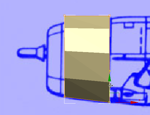 マウスを放し、下にドラッグして、設計図のイメージのように先端へ向かって徐々に細くなるようにポリゴンをスケールします。