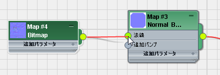 - 新しいビットマップ ノードから法線バンプ マップの[法線](Normal)コンポーネントにワイヤリングします。