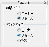 - [作成方法](Creation Method)ロールアウトで、[初期タイプ](Initial Type)と[ドラッグ タイプ](Drag Type)を両方とも[スムーズ](Smooth)に変更します。