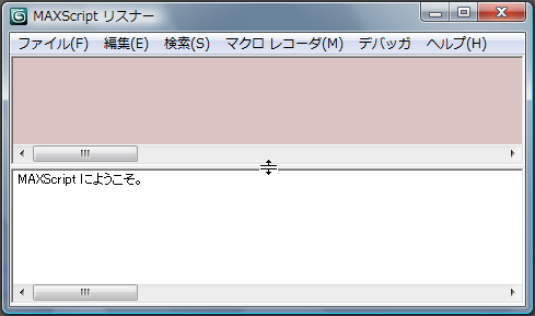 3ds Max によって[MAXScript リスナー](MAXScript listener)ダイアログ ボックスが開きます。