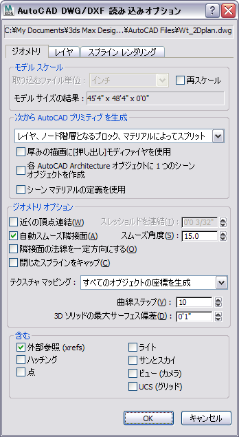読み込む対象の AutoCAD ファイルの単位は、フィートとインチです。3ds Max で同じ単位設定を使用することをお勧めします。
