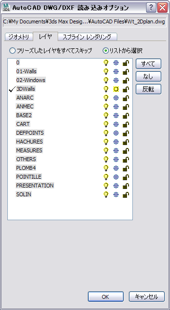 AutoCAD ファイルを 3ds Max に読み込む準備ができました。このファイルを使用して 3D の部屋の全体的な構造を作成していきます。
