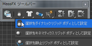([選択をダイナミック リジット ボディとして設定](Set Selected As Dynamic Rigid Body))をクリックします (ボールで同じオプションを使用したので、このボタンが表示されているはずです)。