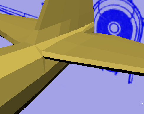 水平尾翼は問題ありませんが、水平尾翼が機体と結合する部分に、不自然に狭くなっている面が 2 つあります。これは、1 つの頂点を移動すると修正できます。