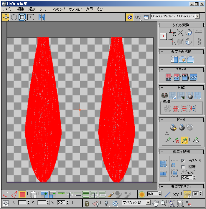 マップ パターンが[UVW を編集](Edit UVWs)ウィンドウに表示されます。