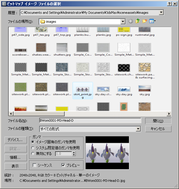 3ds Max によって[ビットマップ イメージ ファイルの選択](Select Bitmap Image File)ダイアログ ボックスが開きます。