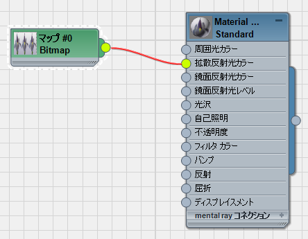3ds Max によってマテリアルの[拡散反射光カラー](Diffuse Color)コンポーネントにビットマップ ノードが追加されます。