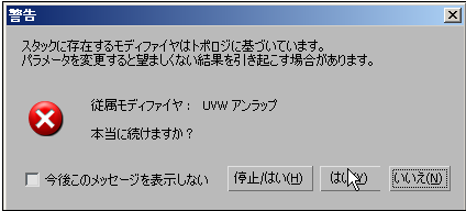3ds Max はトポロジ警告が再度表示されたら[はい](Yes)をクリックして閉じます。
