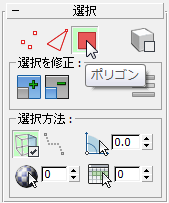 ([ポリゴン](Polygon))をクリックして[ポリゴン](Polygon)サブオブジェクト レベルに切り替えます。
