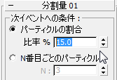 [パーティクルの割合](Fraction Of Particles)が選択されていることを確認し、[次イベントへの条件](Test True For)