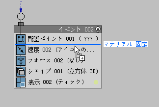 マテリアルは時間の経過とともに変化しないので、残り火のイベントに Material Static オペレータを使用できます。