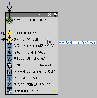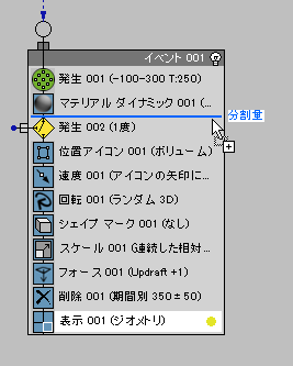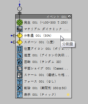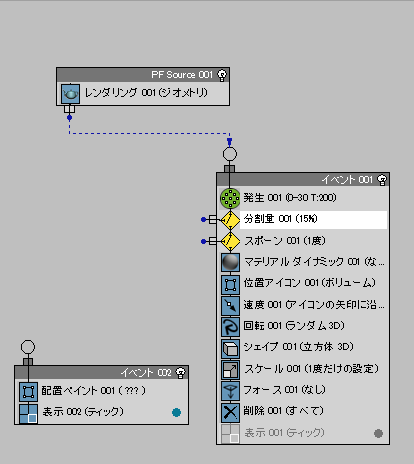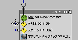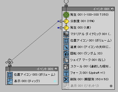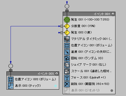 これで Event 002 は、Split Amount から送られるパーティクルを使用できるようになりました。
