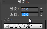 - Speed のロールアウトで、[速度](Speed)の値を 20.0 に、[変動](Variation)の値を 10.0 に変更します。