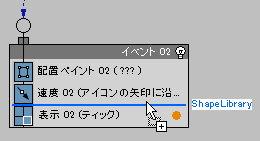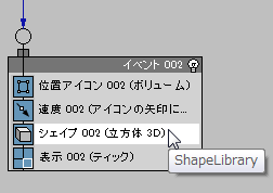 - Shape オペレータをコンテナからドラッグし、Event 002 にドロップします。