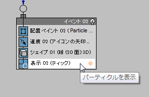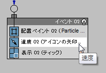 - パーティクル ビューで、Event 02 のタイトル バーをクリックしてイベント全体を選択します。