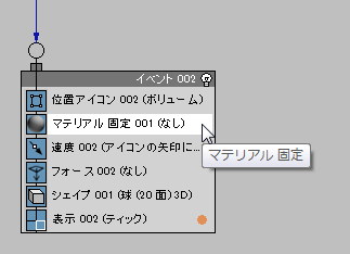 - [マテリアル 固定](Material Static)オペレータをコンテナからドラッグして Event 02 に追加します。
