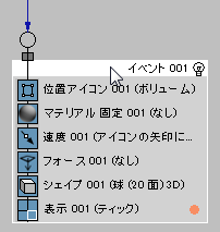 イベント表示の何もない部分にイベント(オペレータ、テストなど)をドロップすると、パーティクル フローは新しいイベントを作成します。最初は、新しいイベントにはドロップしたオペレータと Display オペレータが含まれています。