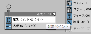 - Event 02 で、Placement Paint オペレータをクリックしてハイライト表示します。