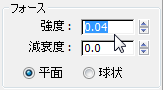 [フォース](Force)領域で、[強度](Strength)の値を 0.04 に変更します。