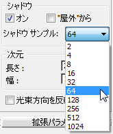 [シャドウ](Shadows)領域の[シャドウ サンプル](Shadow Samples)の値を 64 に変更します。