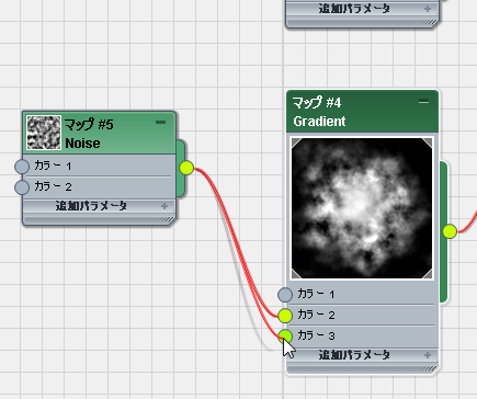 - 2 番目のワイヤを同じノイズ マップからドラッグし、グラデーション マップの[カラー 3](Color 3)コンポーネントにワイヤリングします。