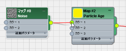 - ノイズ マップをパーティクル エージ マップの[カラー 1](Color 1)コンポーネントにワイヤリングします。