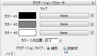 - [グラデーション パラメータ](Gradient Parameters)ロールアウトで、[グラデーション タイプ](Gradient Type)を[放射状](Radial)に変更します。