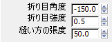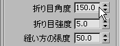 - [縫い目](Seams)ロールアウトで、[折り目角度](Crease Angle)の値を 150.0 に変更します。[折り目強度](Crease Strength)の値を 5.0 に変更します。