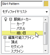 - モディファイヤ スタックで、[服飾メーカー](Garment Maker)階層が表示されていない場合は