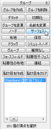 3ds Max によって[グループを作成](Make Group)ダイアログ ボックスが開きます。頂点の選択に Waistband と名前を付けて[OK]をクリックします。