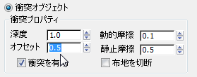 - [衝突プロパティ](Collision Properties)領域で[オフセット](Offset)の値を 0.5 に変更します。