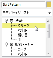 注: body は布地シミュレーションの一部なので選択できます。Pullover Pattern などは、スカートのシミュレーションに追加されていないので選択できません。