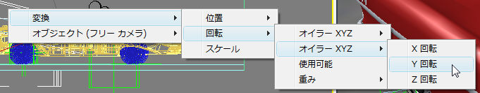 カメラの回転軸は Y 軸(緑色で表示されている軸)です。