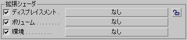 [拡張シェーダ](Extended Shaders)領域で、[ディスプレイスメント](Displacement)の