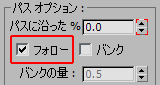 [パス オプション](Path Options)領域で[フォロー](Follow)をオンにします。