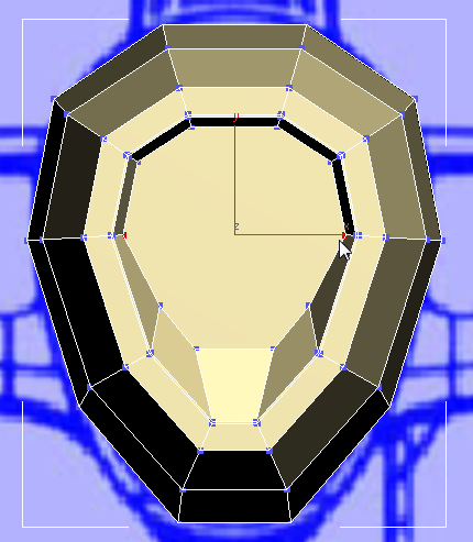 マウスを放し、もう一度わずかに下へドラッグして、へこみの内側の部分にテーパを付けます。この変更は、レフト ビューポートを使用すると見やすくなります。