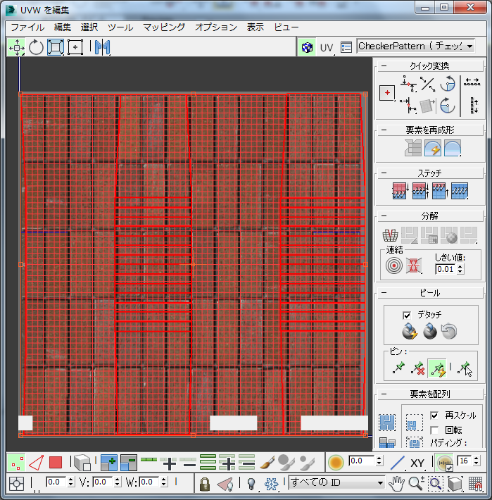 レンガの配分を改善するため、マップ上の UVW グリッドのサイズを変更する必要があります。