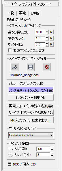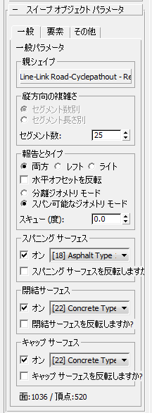 選択したシェイプ オブジェクトに、セグメント レベルのマテリアル ID 割り当てが含まれている場合、これらもスイープ オブジェクト ジオメトリに読み込まれます。