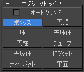 2. [作成](Create)パネル ([ジオメトリ](Geometry))がアクティブな状態 [標準プリミティブ](Standard Primitives) [オブジェクト タイプ](Object Type)ロールアウトで[ボックス](Box)をクリックします。