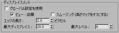 - ここでは最大ディスプレイスは既定値のままにしておきます。これでレンダリング時にエラーメッセージが表示されるようなら、最大ディスプレイス値をそのエラーメッセージが指定している値に変更し、再度レンダリングを行ってください。